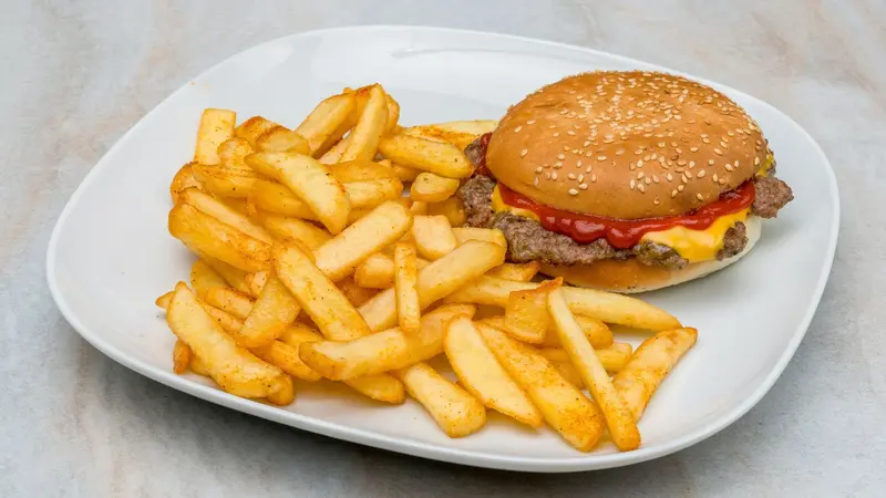 Hamburger with french fries