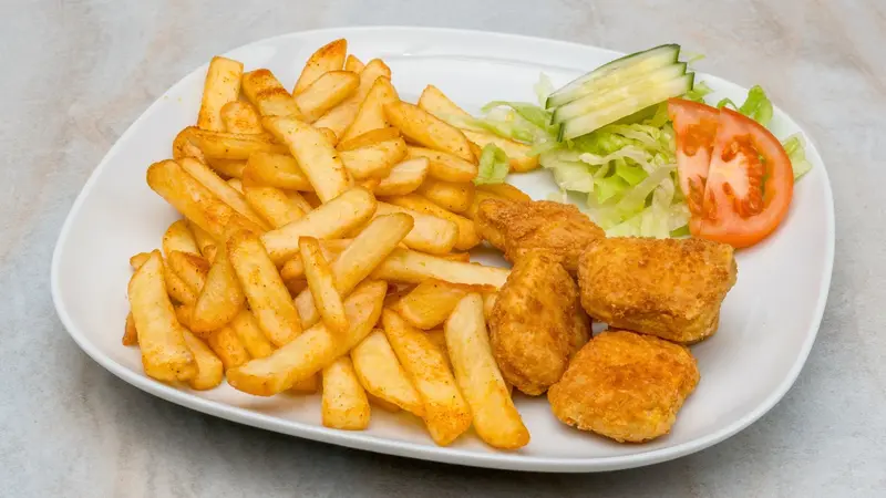 5 pcs, with french fries and salad